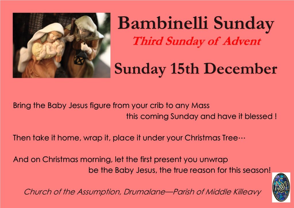 Blessing available at 6.15pm Vigil Mass Saturday and 10.30am & 12 noon Masses on Sunday.