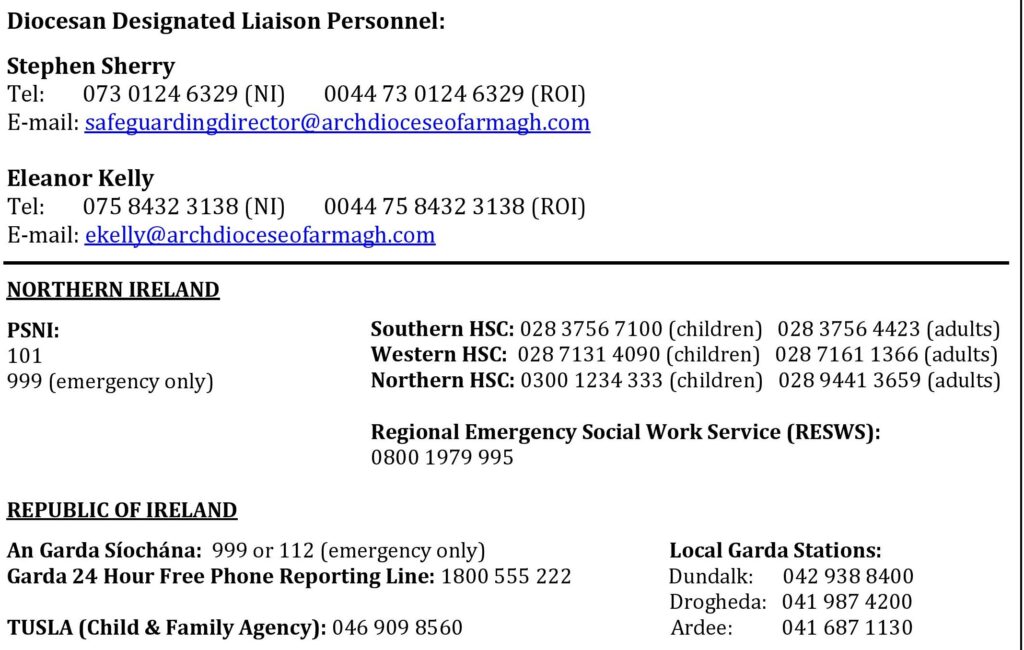 - The Archdiocese of Armagh – diocesan policies, etc. can be found here: